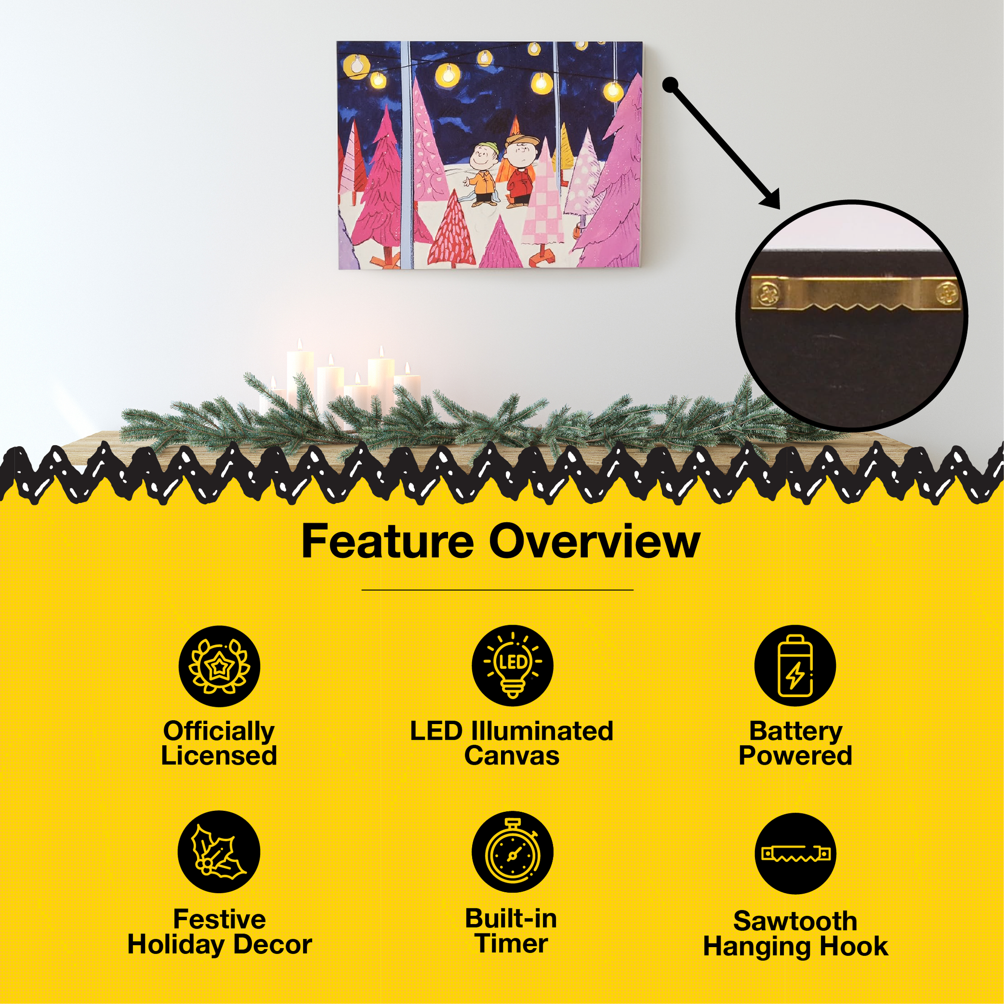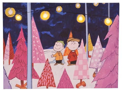 Officially Licensed Peanuts Collectible: Features artwork from A Charlie Brown Christmas with Linus and Charlie in a colorful tree farm.
